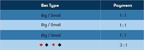 ຜູ້ນສາມາດພະນັນໄດ້ພຽງແຕ່ສາມຊຸດ ຫຼືໜ້ອຍກວ່າ.